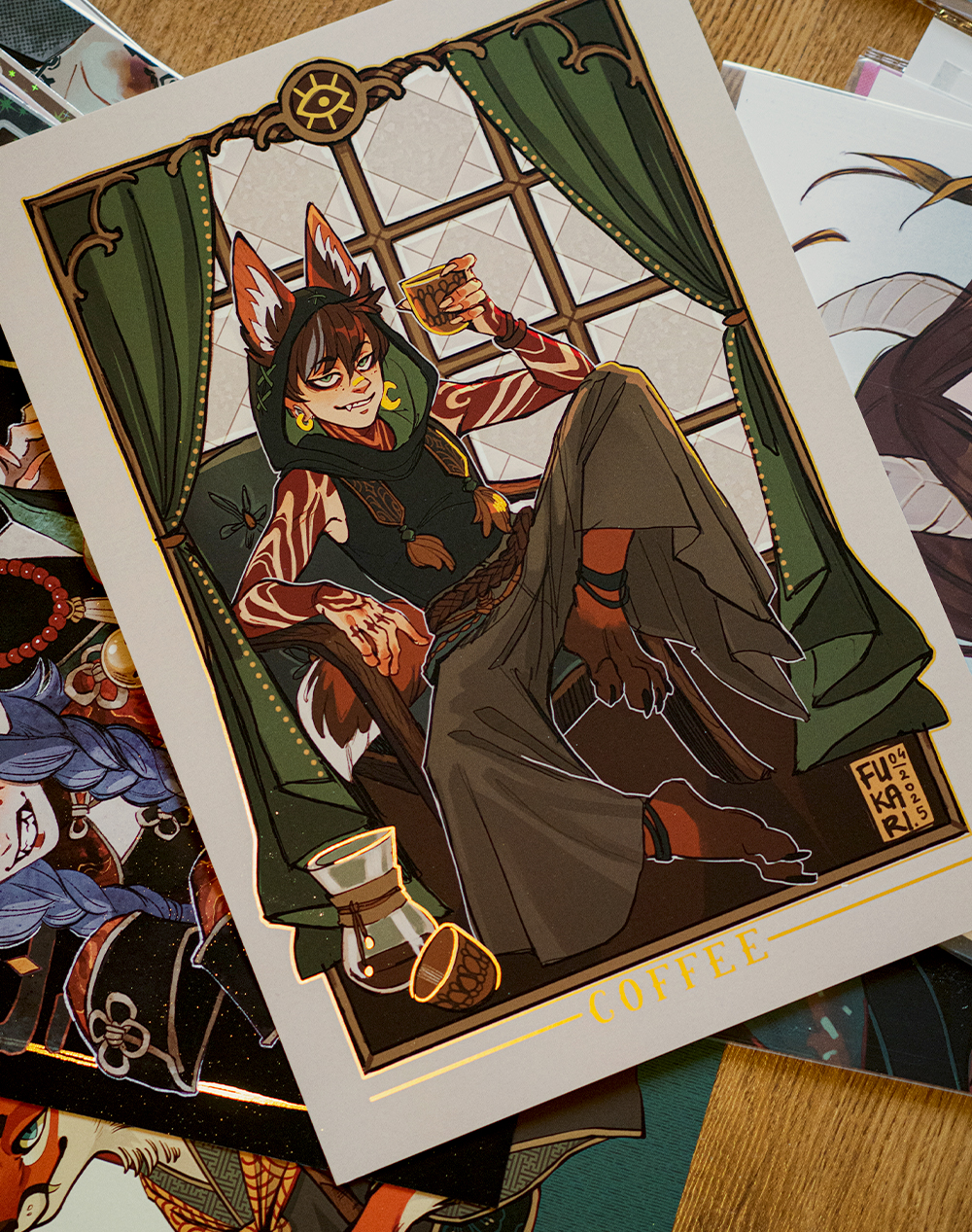 Silky in touch, laminated chalk overlay paper with gold foil.